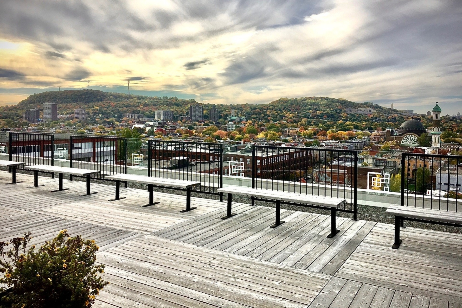 Une vue panoramique à couper le souffle sur le grand Montréal. Exclusif aux occupants du Carré de Gaspé, que ce soit pour un briefing d'entreprise, pour casser la croute ou s'offrir un moment de détente, cette dernière vous séduira durant toute la saison estivale. La terrasse peut être louée pour des événements spéciaux.